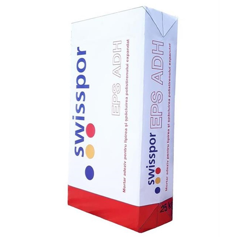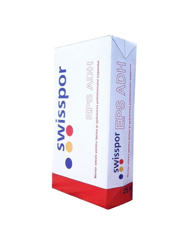 - swisspor EPS ADH este un adeziv sub forma de pulbere, pe baza de ciment, avand o granulatie controlata, in compozitia lui intrand adaosuri minerale si aditivi specifici, meniti sa-i amelioreze caracteristicile de aderenta si flexibilitate.